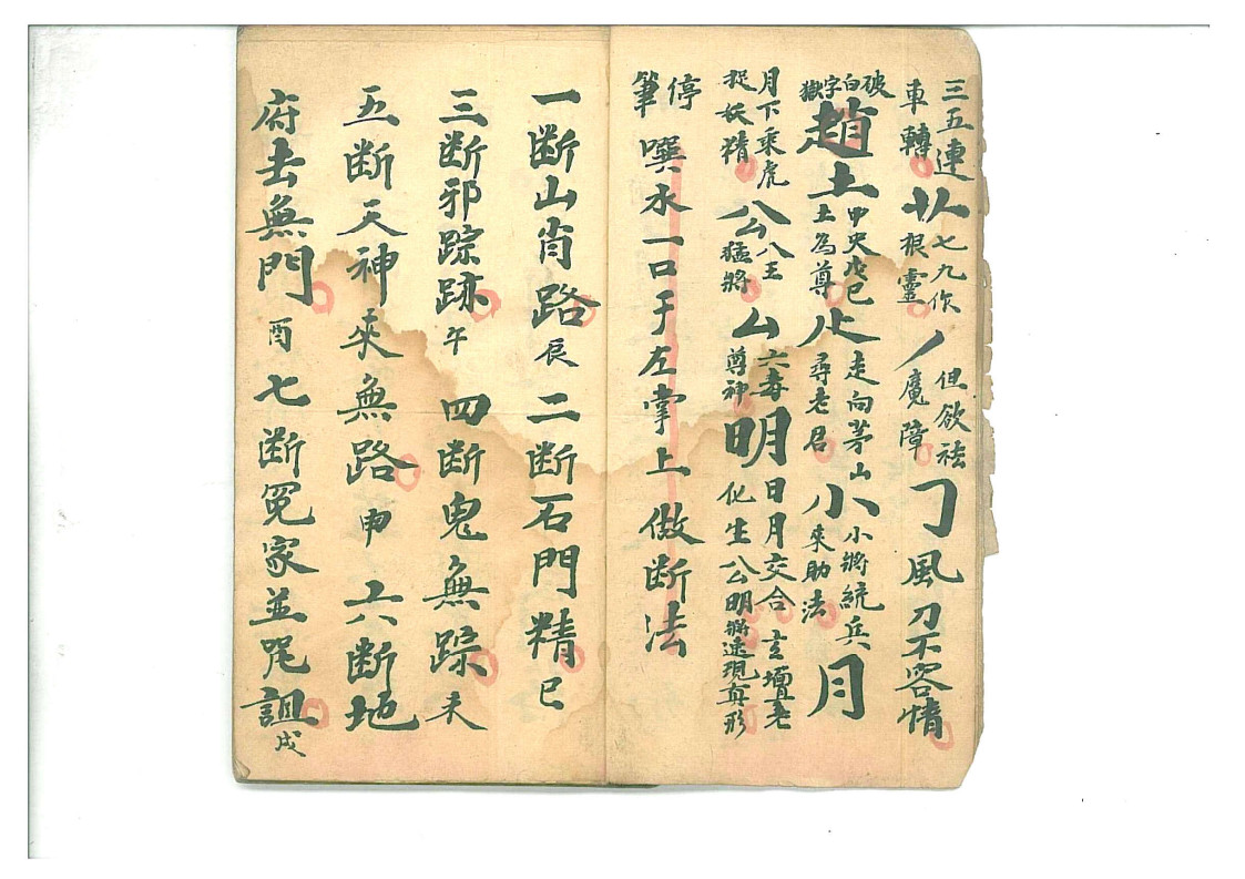 内容有:收禁法宝、断法秘、促法秘、诸讳结窍破、收五方召秘、天罗地网二号破秘、断五童八宝字号、收禁八宝号、断邪家八宝号、考邪号等等。
