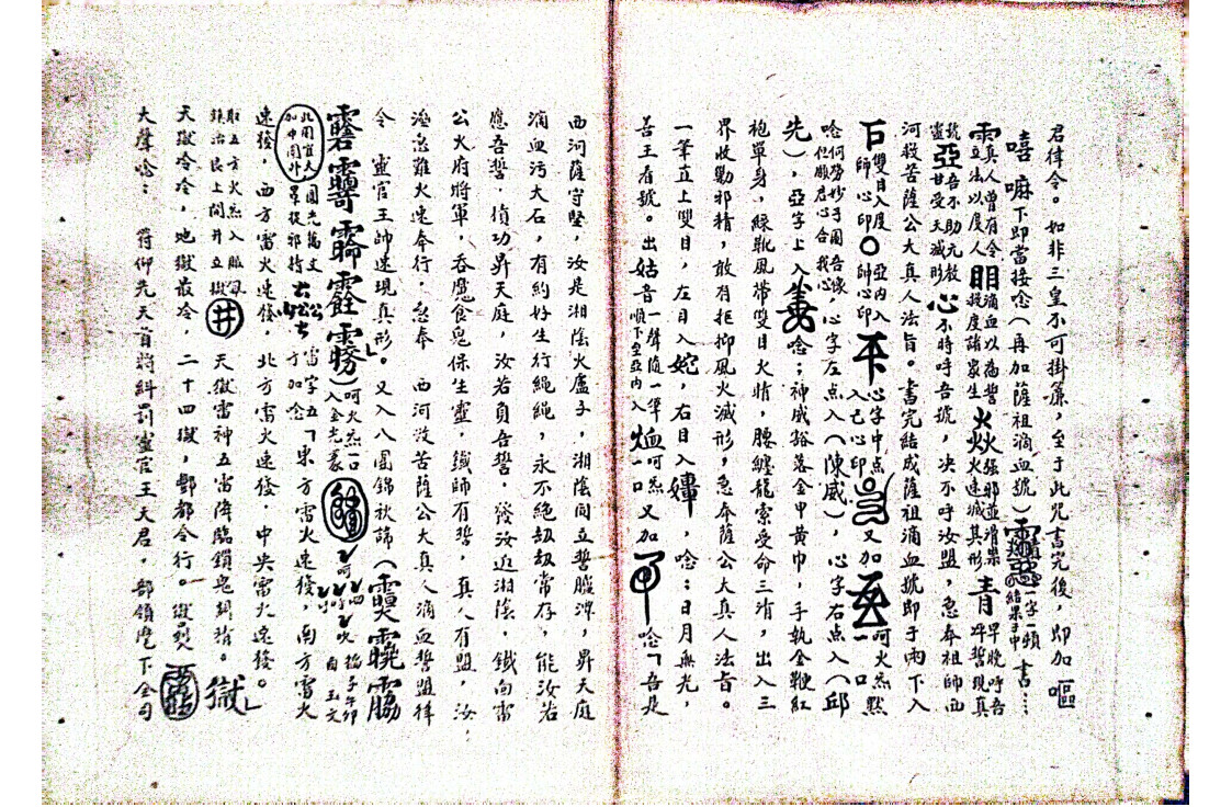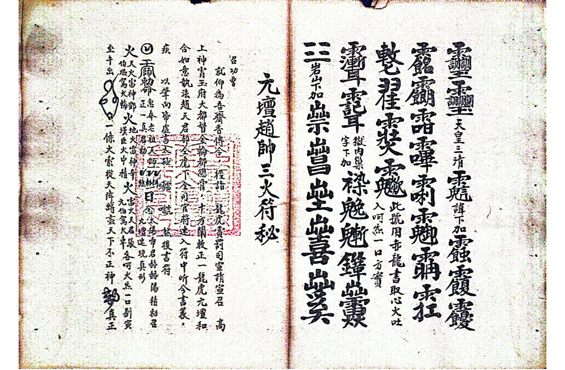 内容有:敕笔墨纸砚水朱、三卓下笔、召将、敕笔墨纸砚水朱、召将、诸讳结法、诸内秘法旨,师传王帅豁落符秘、朱帅肘后符秘、玄坛赵帅三火符秘、龙虎山梅仙驱邪符秘、地祇温帅符秘、治癫狗咬挂符、驱邪主帅符等等。