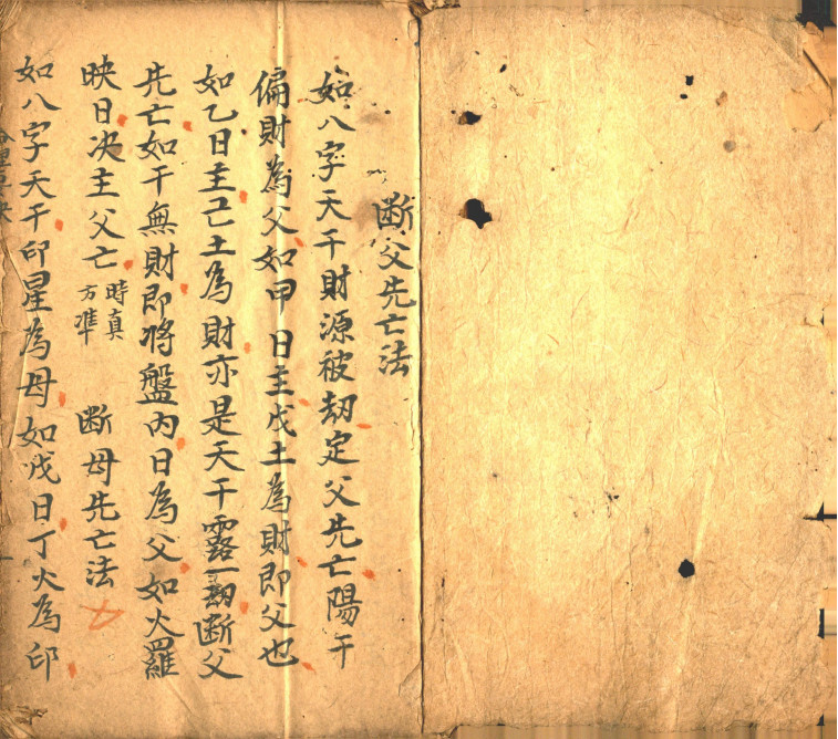 内容有:断父先亡法,断兄弟多少法,断子息宫法,断妇人命法,江湖摘要,论富贵贫命,看男女命捷法,三盘赋,崔泉南男命赋,女命赋,看命入式,论音生命等。
