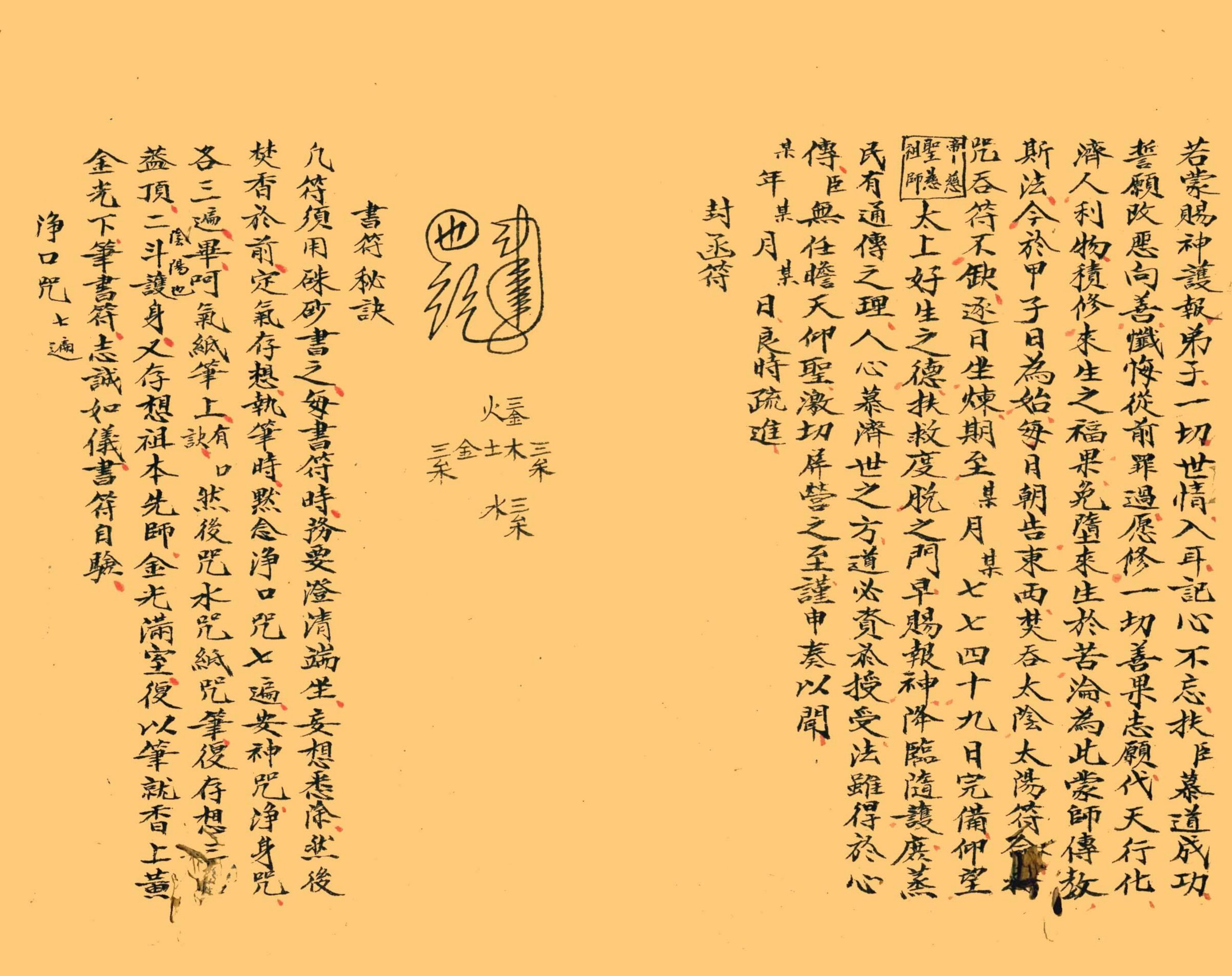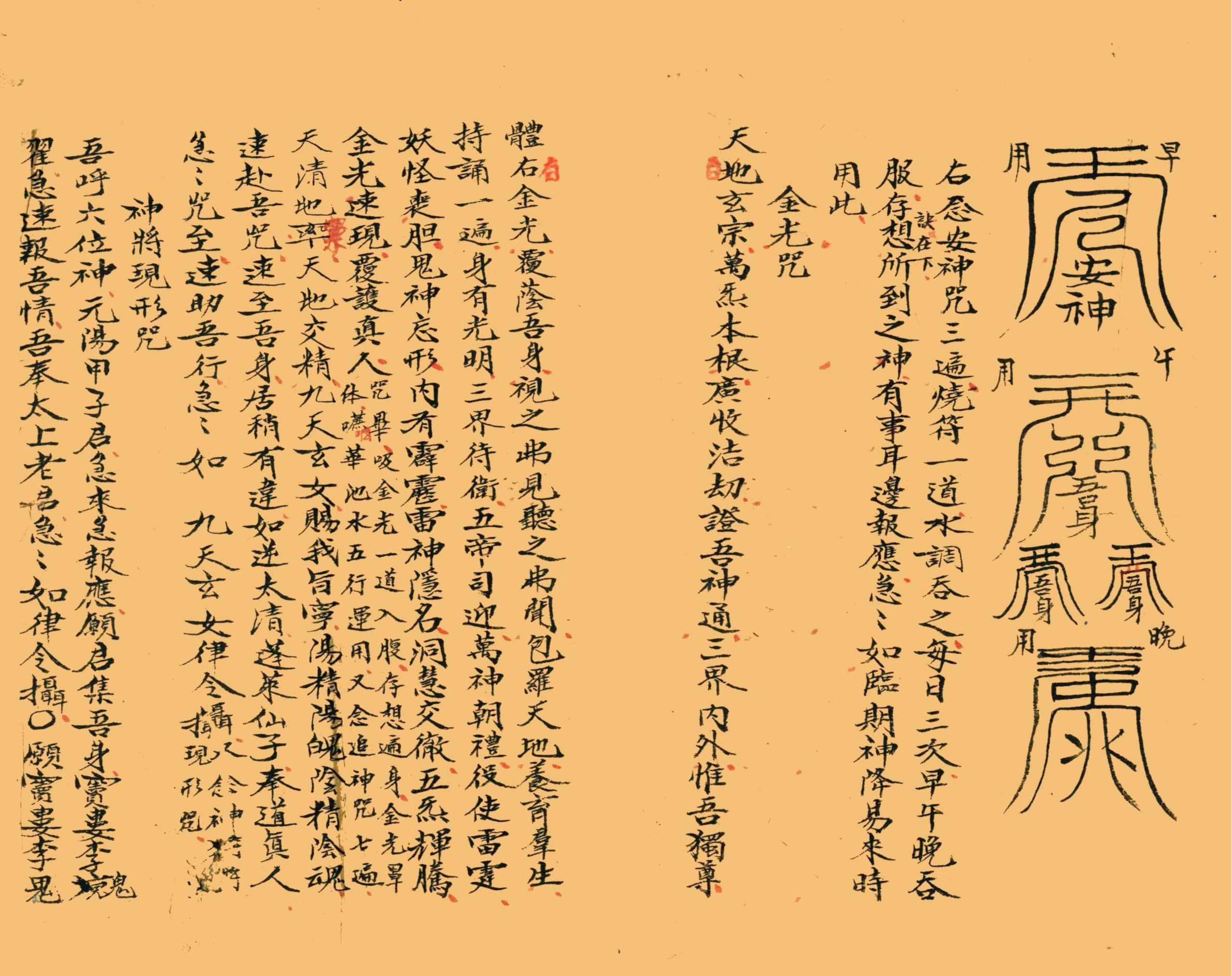 内容有:宣音咒七遍、宣音符、安神咒、金光咒、神将现形咒、存想诀、焚香咒、焚钱财咒、封函符、书符秘诀、净口咒、勅水咒、勅纸咒、勅筆咒、追神咒、集神咒等等。