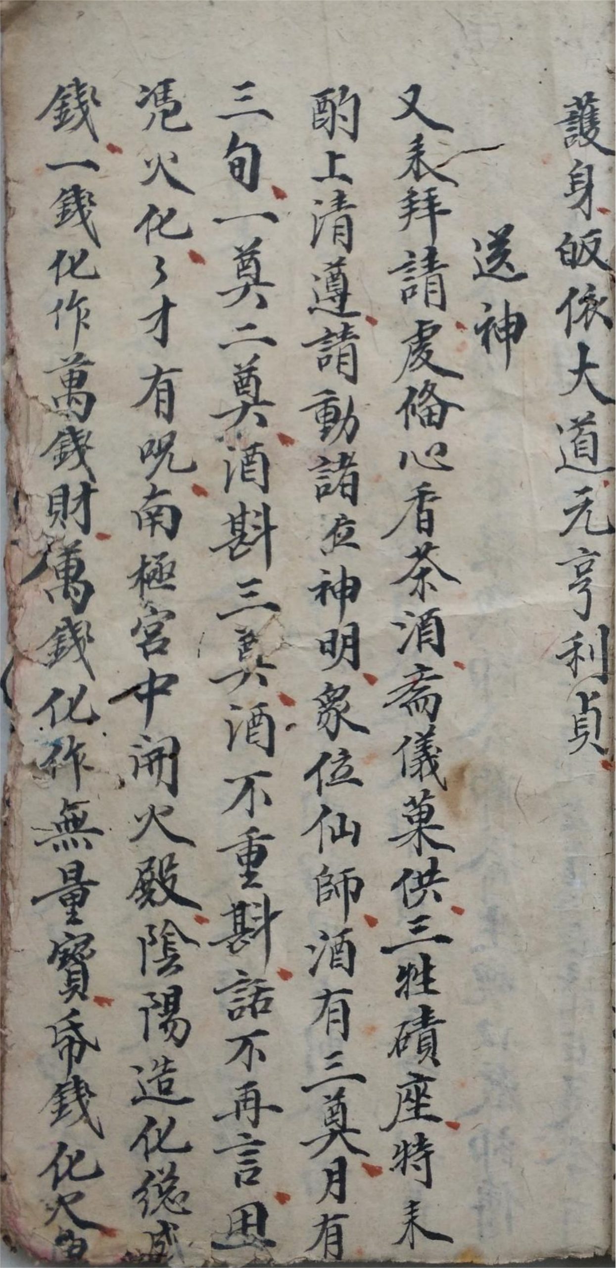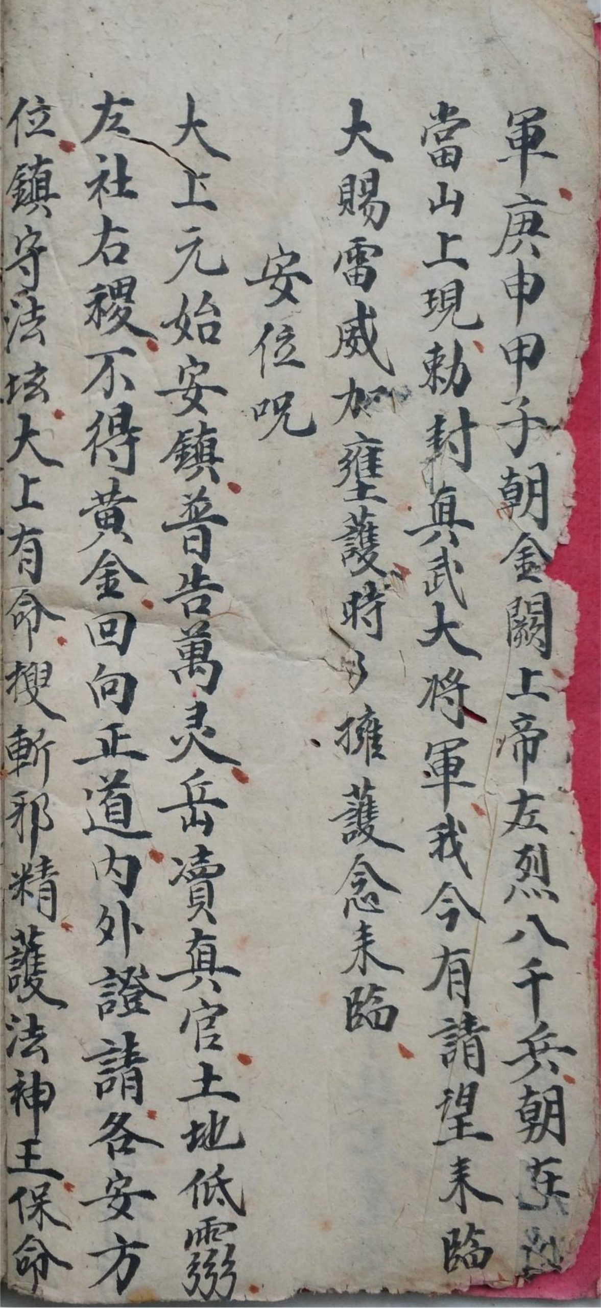 内容有:藏魂咒、化水盌咒、钉符咒、造符咒、罗汉呪、元帅呪、通用咒、太岁呪、安位呪、送神、大神符、诸事用符例限(如治瘟治邪人祛鬼制朱雀打官等)、退犯喝水、止血咒、骨梗喉咙秘、师派、口教师传法显张先生、造水呪、观音呪、金刚呪、起船酌送、送白虎、赎魂、回神、安奉灶神、安奉香火补谢土神、解惊一宗等。