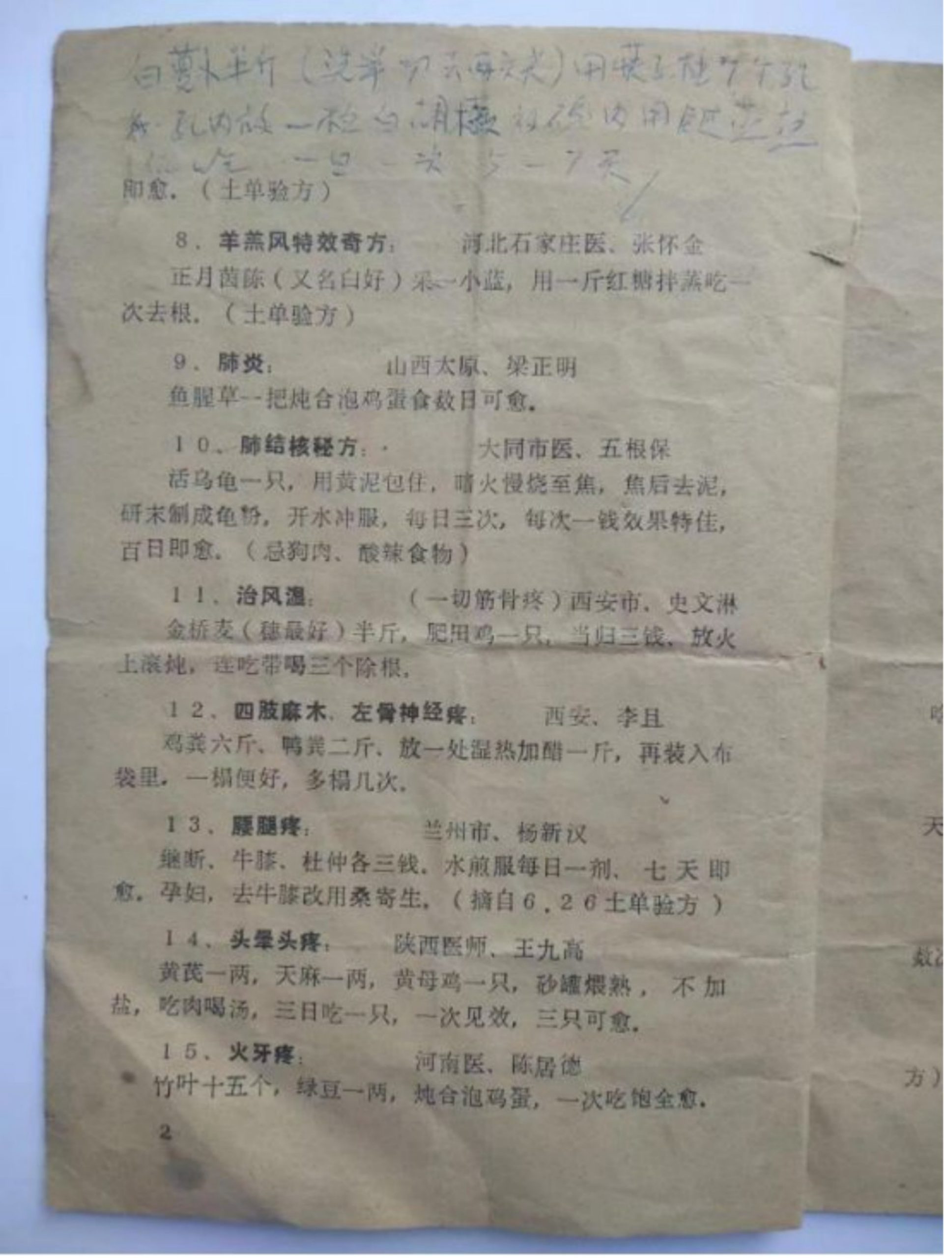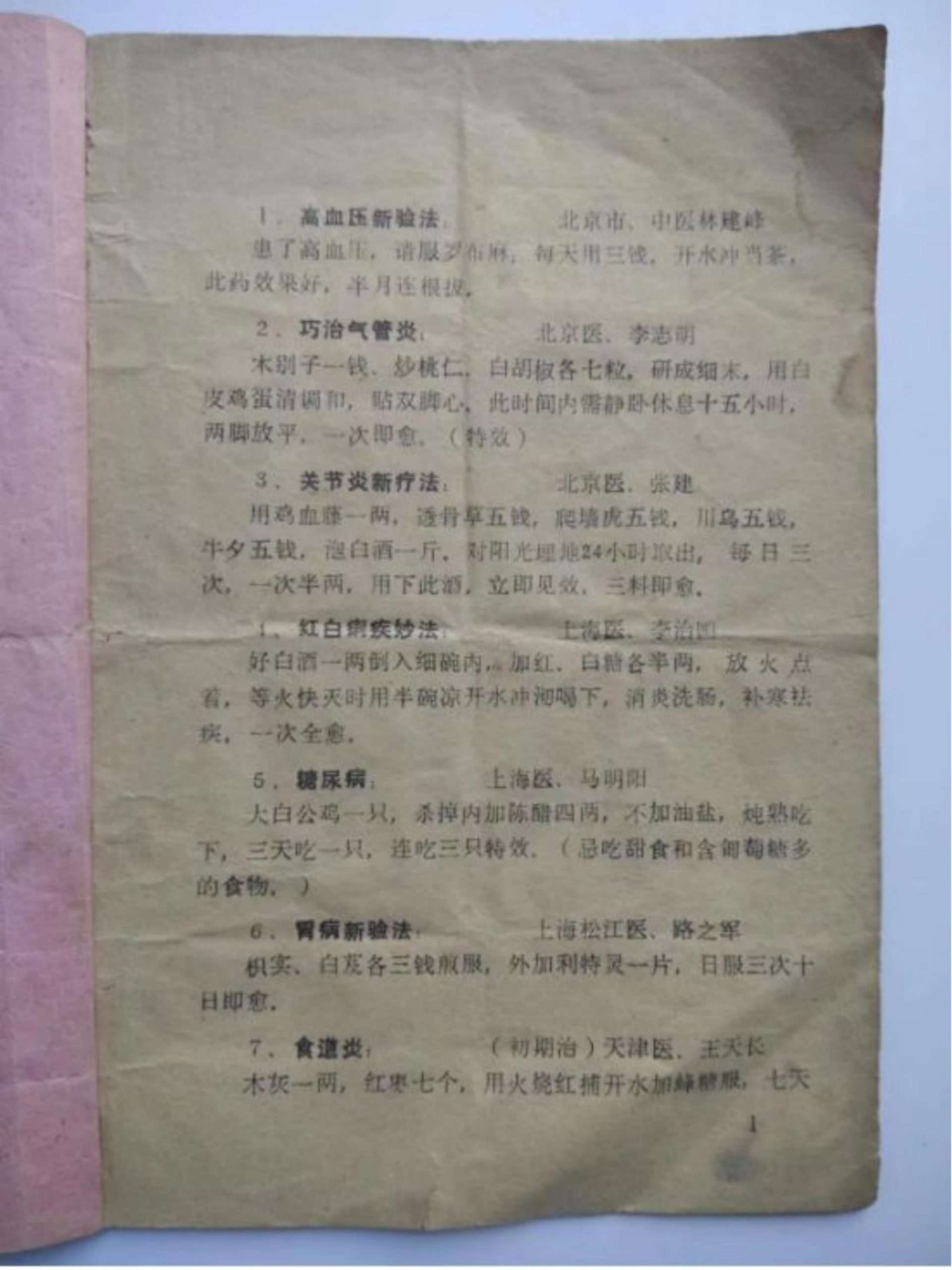 内容有:年久头痛、鬎鬁头、偏头风、猪头疯、神经衰弱、风火眼、夜盲症、鼻出血、耳聋、耳内流脓、虫牙痛、体虚牙痛、气喘咳嗽、老人咳嗽、百日咳、吐血、高血压、肺结核等等。