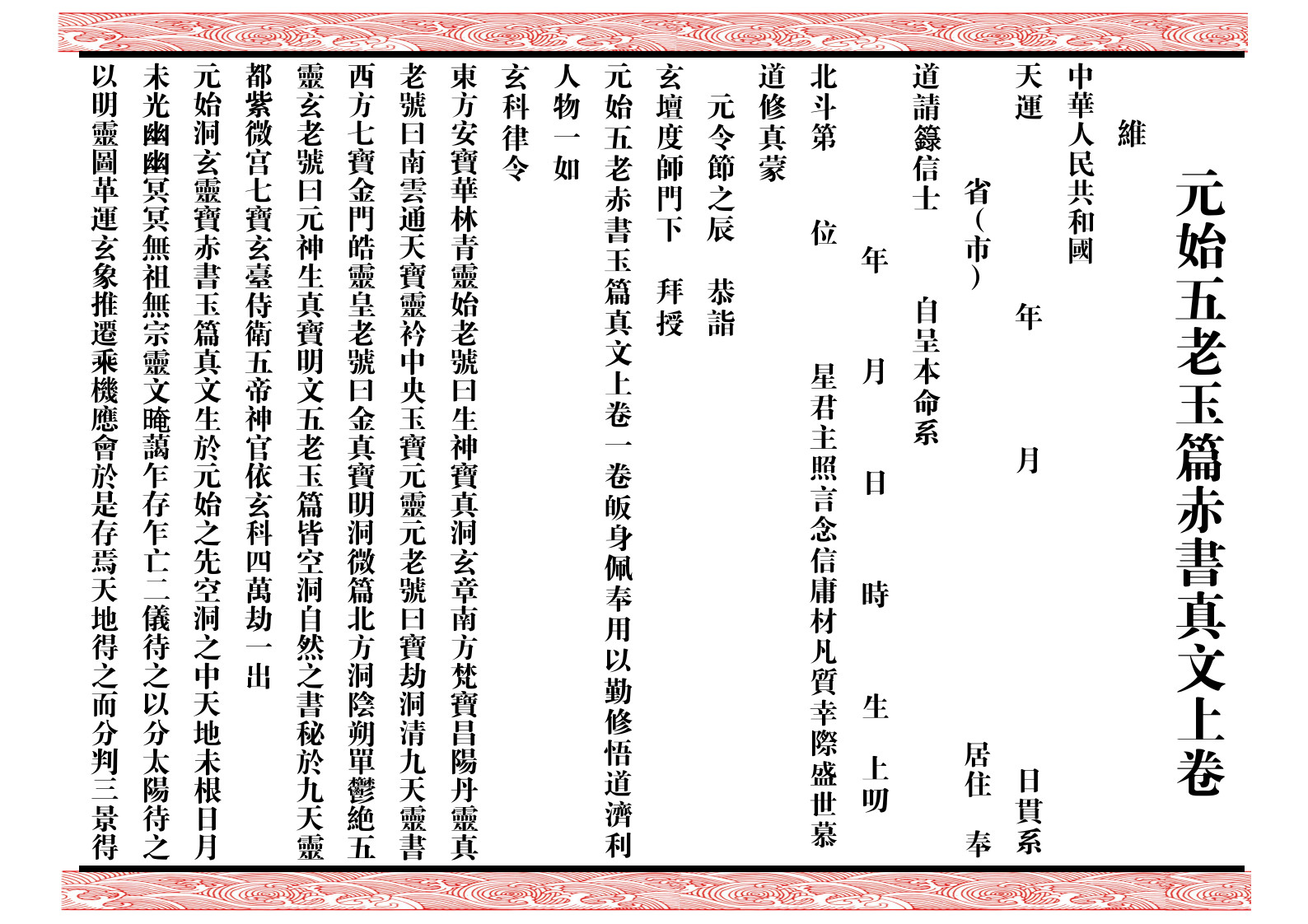 书名:《元始五老赤书玉篇真文(上中下卷)》