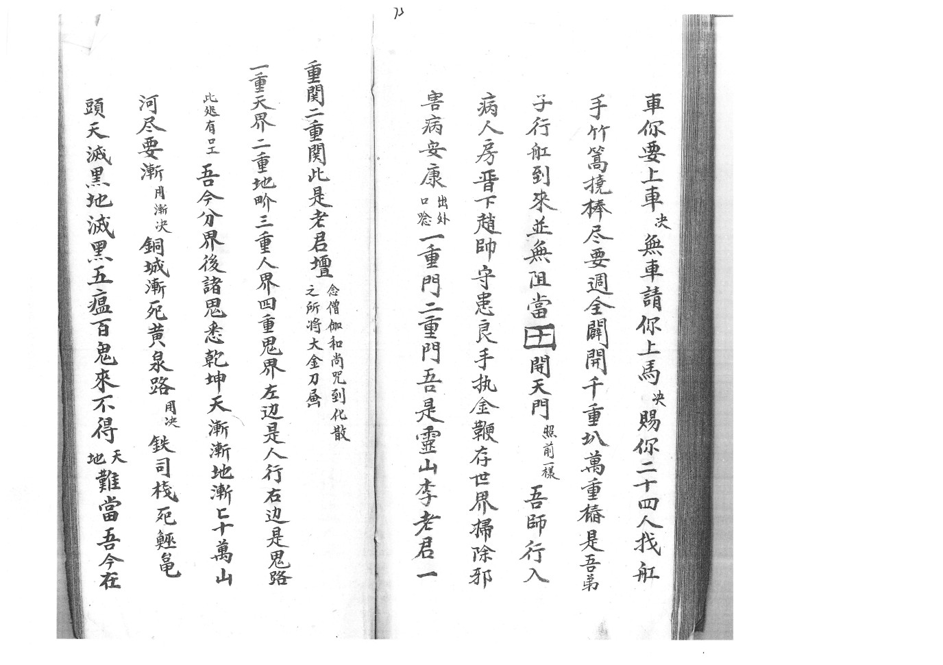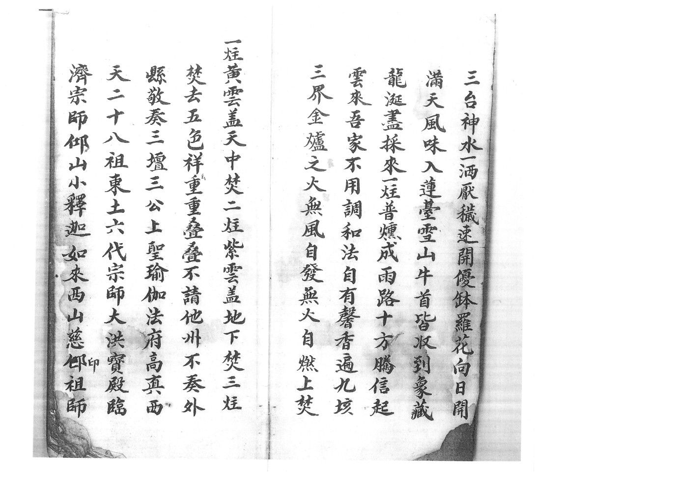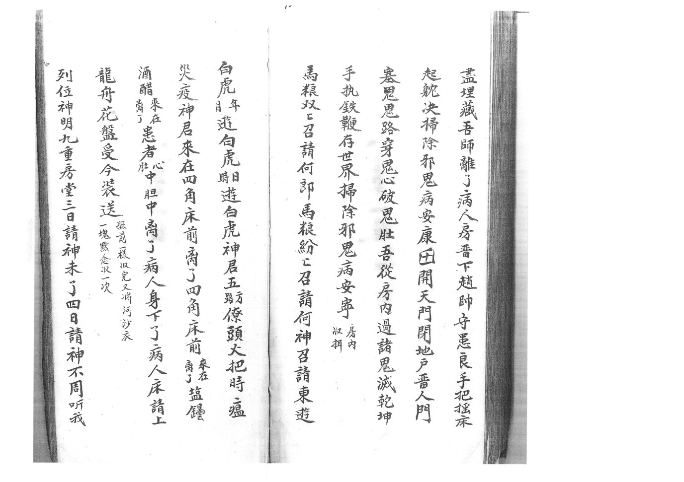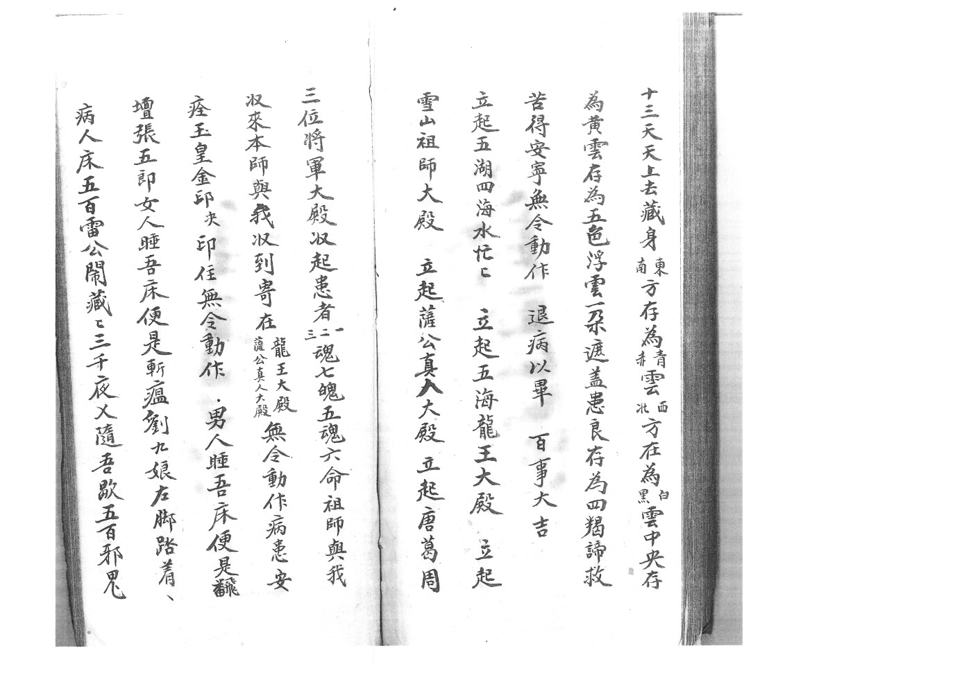 内容有:启师请神口语一宗、师派、收游魂一宗、封丧闭棺出召祭车扫荡一段、咒水法秘一宗、收六甲胎人、普庵开光法秘、净水安奉、杂治诸符:报犯、急报六甲、起九良星、退病…..百怪、除猖、山精……猪猖、安宅、护身带用、贴门…..遣送收摄造盘口诀一宗、入房退病….水火二家装阳存变一宗、点祈法等。