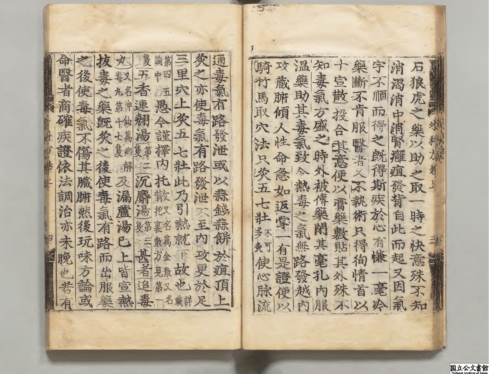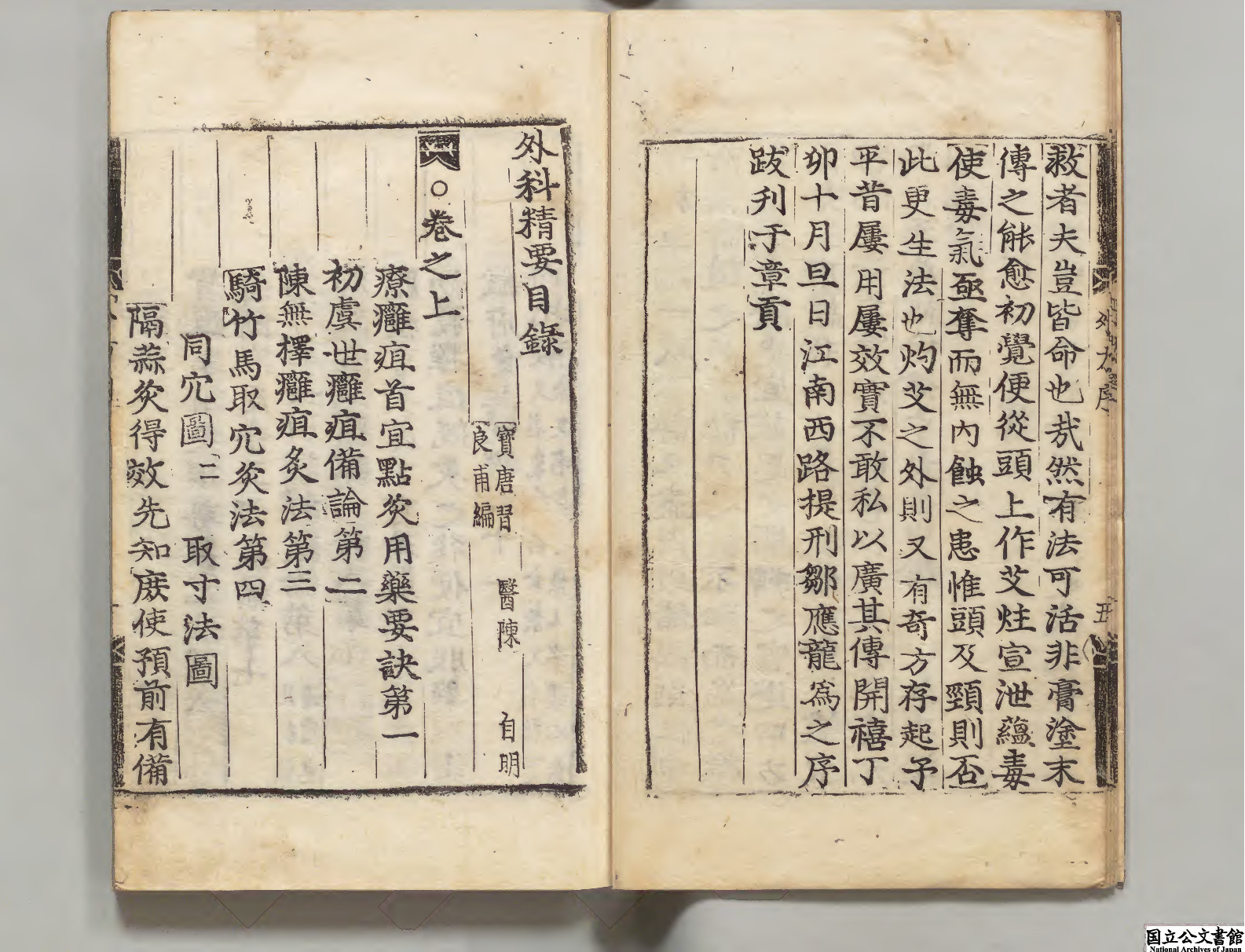 内容有:卷上(療癰疽首宜点灸用药要诀、初虞世癰疽備论、陈无择癰疽灸法、取寸法图、沉香汤、五香汤去大黄加人参黄耆犀角汤、万金散、忍冬酒、红内消酒方等);卷中(癰疽发背分表裹證、察癰发有内外之别、论善恶形證、论生死形證、神仙截法、秘传连翘汤、五香大黄汤、六味车螯散、止痛灵宝散等等);卷下(牡蛎地黄膏、川乌丸、二乌丸、蚣蝎散方、琥珀犀角膏方、犀角散、论伤割證、加减八味丸方、黄耆六乙汤方等等)。
