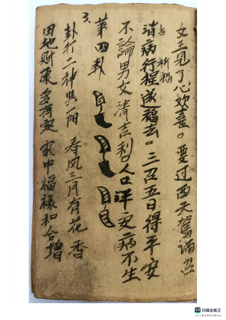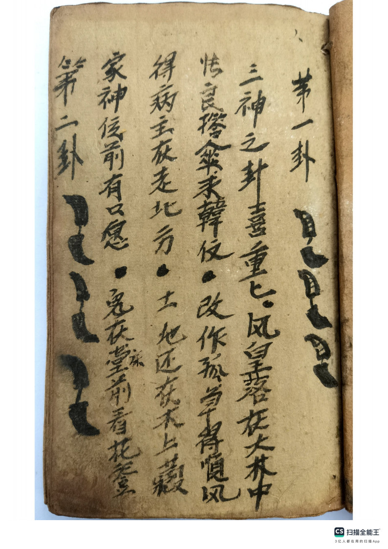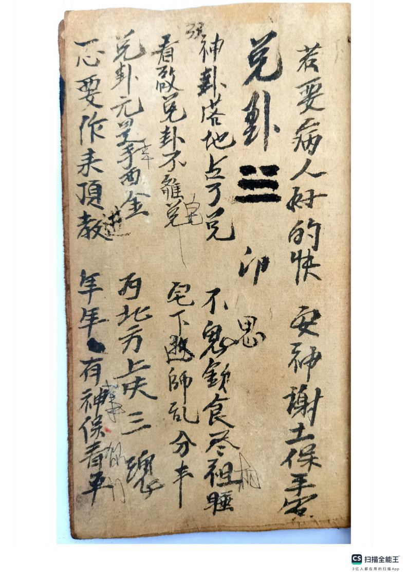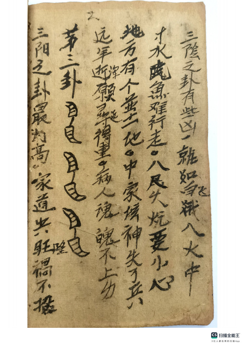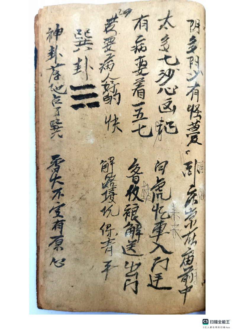 内容有:圣杯、茭杯、羊角卦、打卦,名字多,卦法很多,此为民间流传最广的二十八卦法。民间抄本,后面有八卦卦书内容,圣杯卦也叫羊角卦,两背面为阴,两正面为阳,一阴一阳为圣。