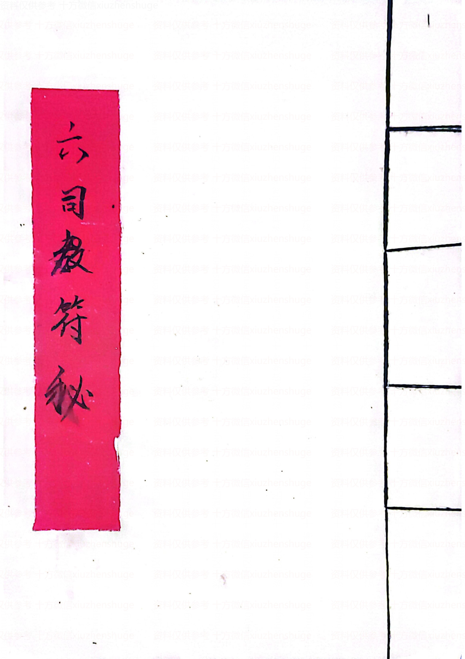 书名:《六司教符秘》 年代:不详 页数:31页 PDF大小:10M 声明:本站所有文章,如无特殊说明或标注,均为本站原创发布。任何个人或组织,在未征得本站同意时,禁止复制、盗用、采集、发布本站内容到任何网站、书籍等各类媒体平台。如若本站内容侵犯了原著者的合法权益,可联系我们进行处理。