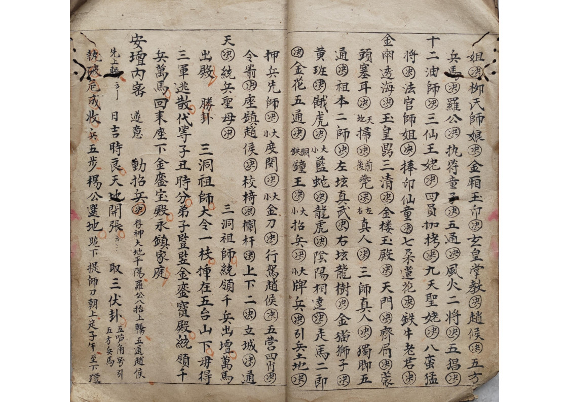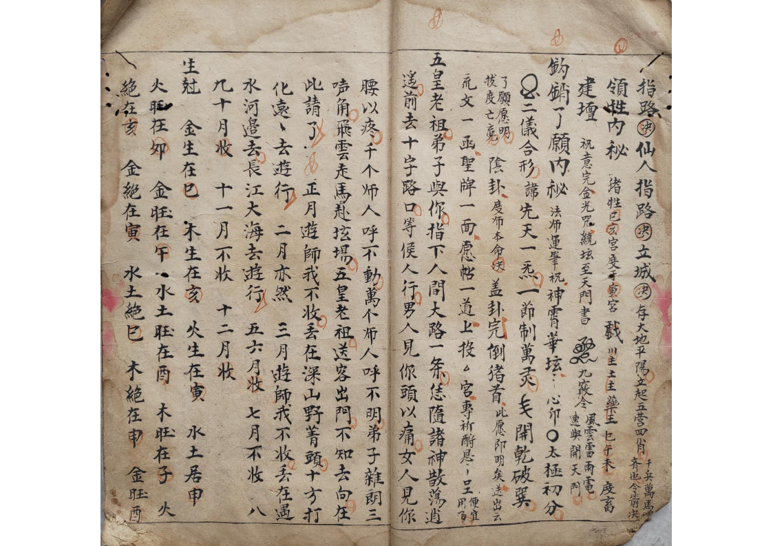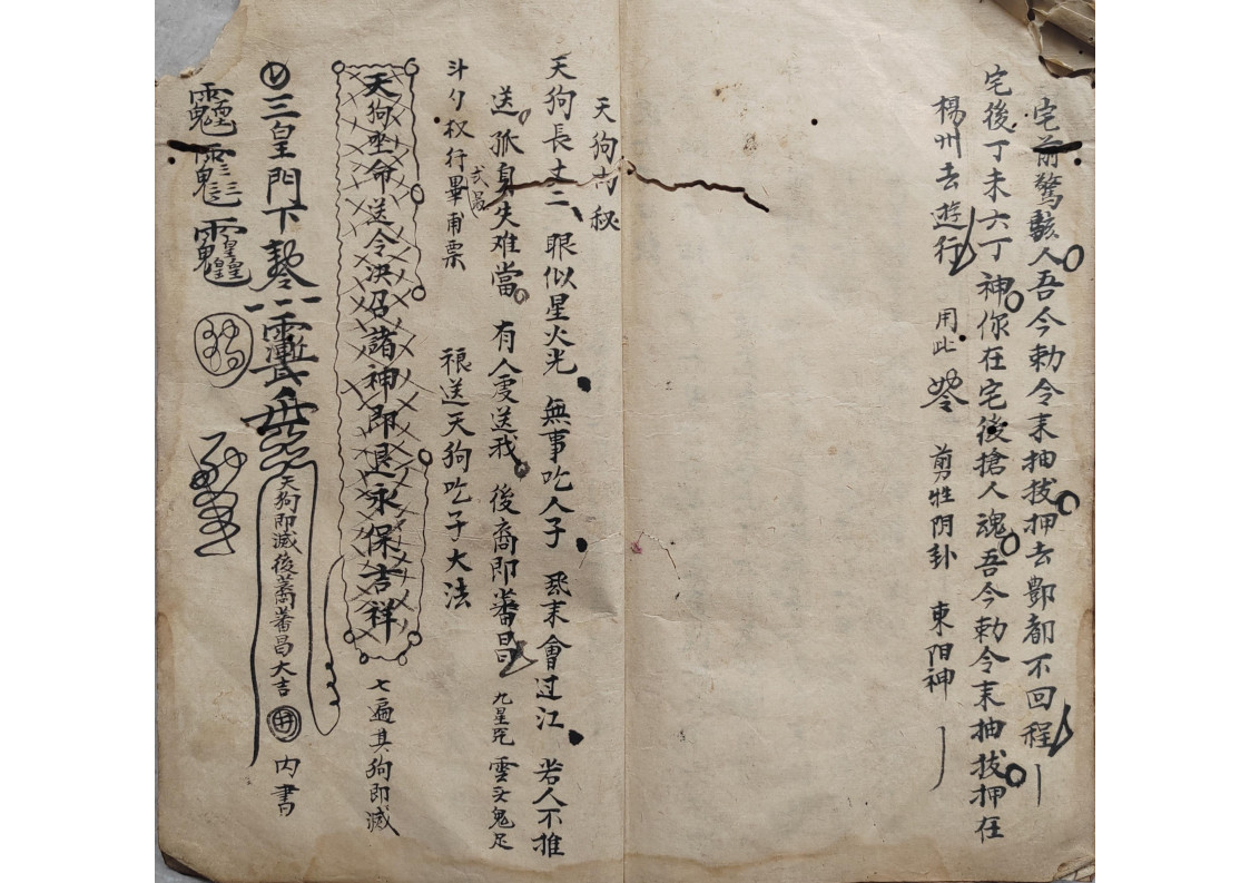 内容有:五方内密、领牲内密、钩销了愿内秘、封刀内秘、庆坛内秘、安坛内秘、下坛内密、烧胎、巫门退病治邪内秘、师刀经图式、拨六丁口诀、天狗内秘等。