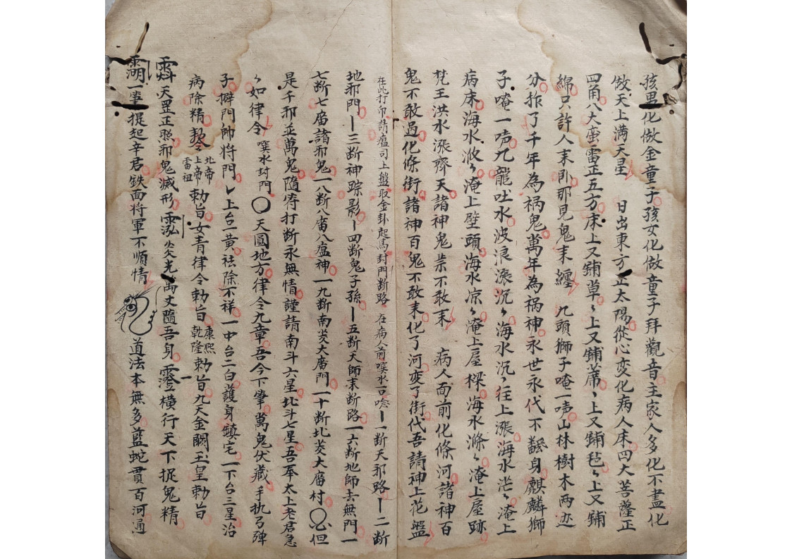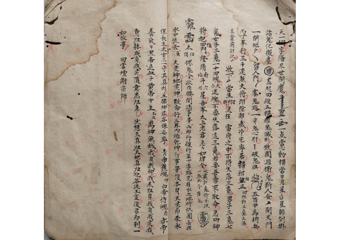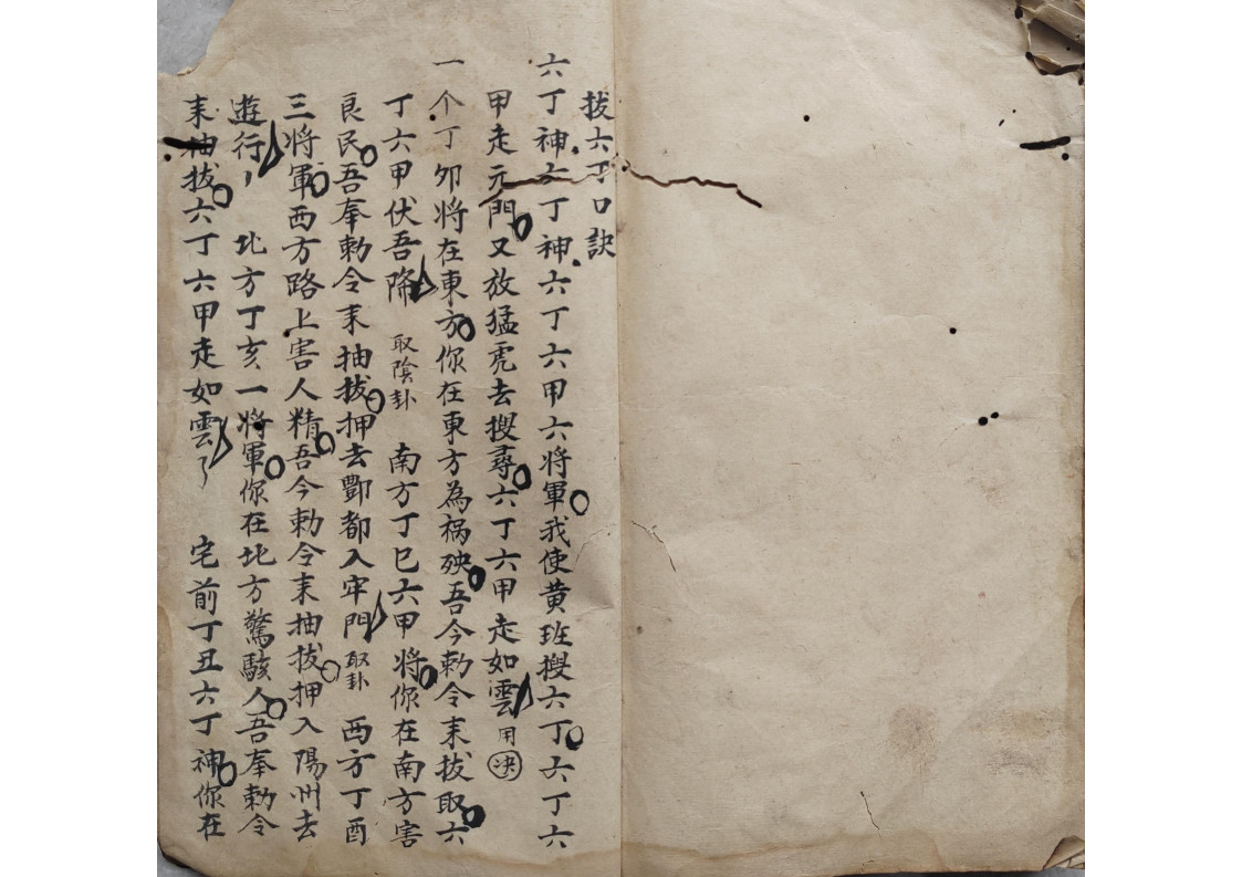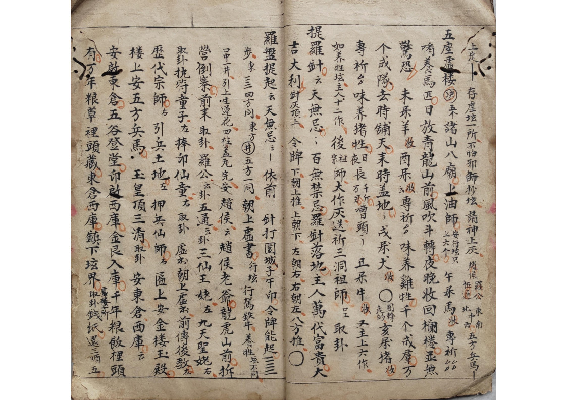 内容有:五方内密、领牲内密、钩销了愿内秘、封刀内秘、庆坛内秘、安坛内秘、下坛内密、烧胎、巫门退病治邪内秘、师刀经图式、拨六丁口诀、天狗内秘等。
