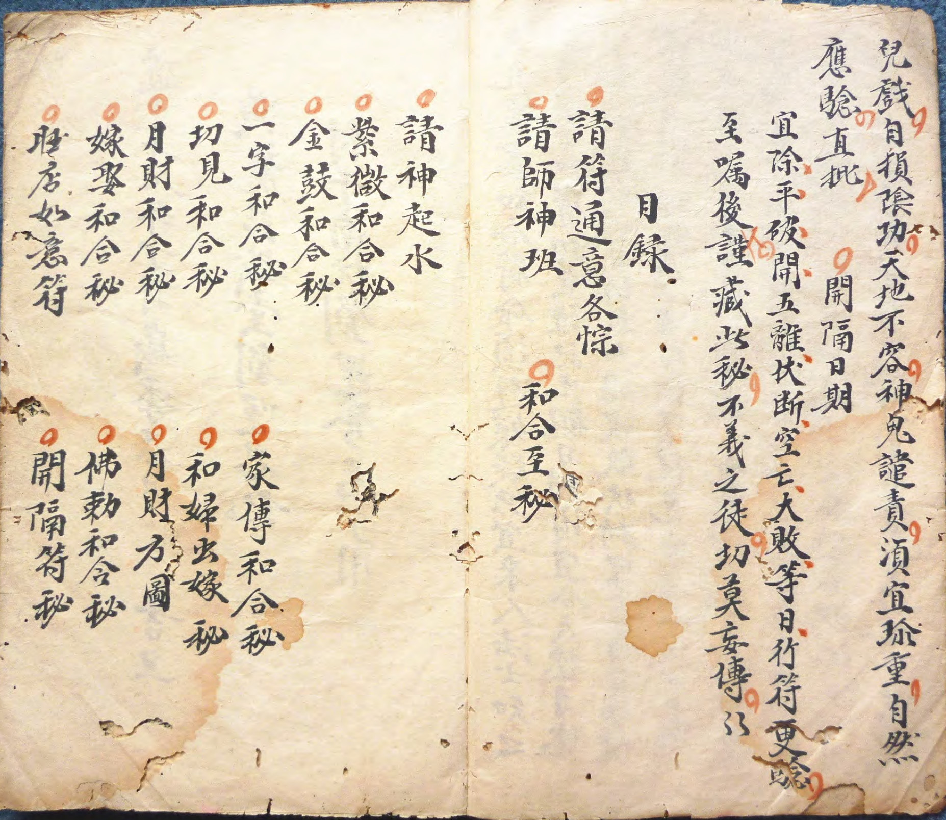 内容有:请符通意各宗,请师神班,和合至秘,请神起水,紫薇和合秘,金鼓和合秘,一字和合秘,初见和合秘,月财和合秘,月财方图,嫁娶和合秘,旺店如意符,家庭和合秘,和妇出嫁秘,佛勅和合秘,开隔符秘等内容。