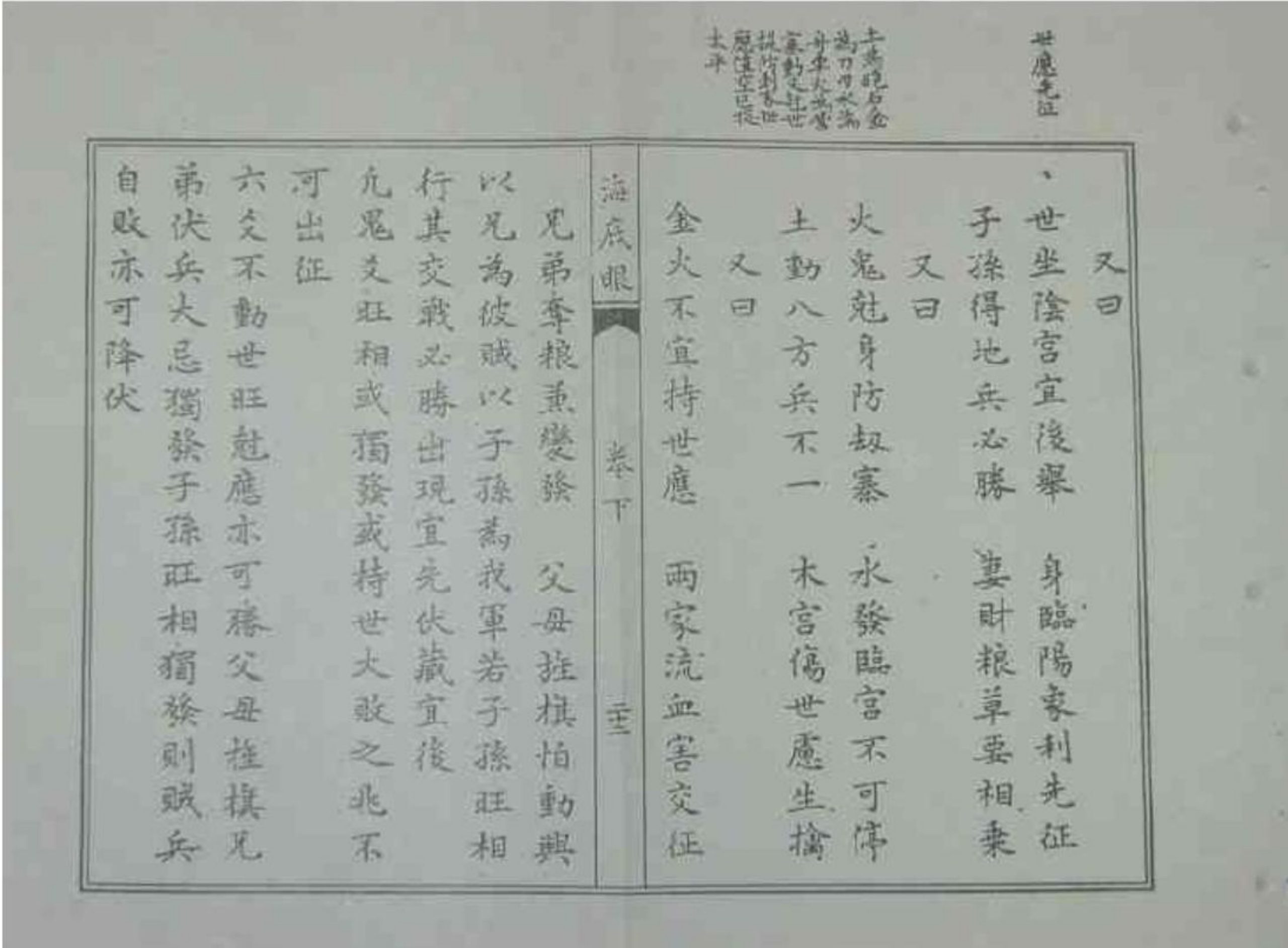 书名:《卜易秘诀-海底眼》 年代:不详 页数:64筒子页 PDF大小:4M 声明:本站所有文章,如无特殊说明或标注,均为本站原创发布。任何个人或组织,在未征得本站同意时,禁止复制、盗用、采集、发布本站内容到任何网站、书籍等各类媒体平台。如若本站内容侵犯了原著者的合法权益,可联系我们进行处理。