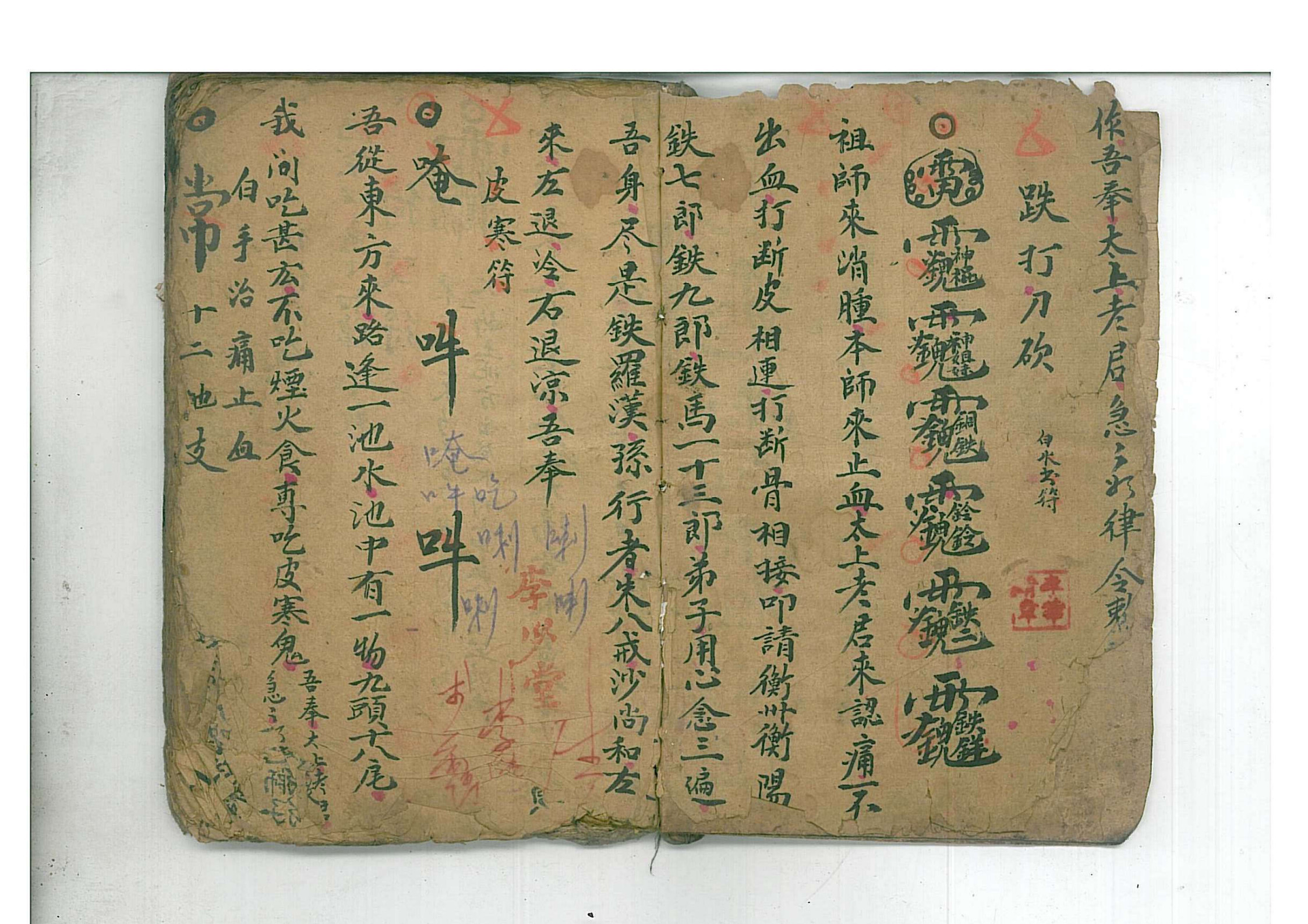 内容有:纯跌打刀砍,治痛止血符,狗咬符,六十花甲,十天干倒,五行相克,起十隔法,起黄道例,起患方向诀,五虎道,六十年太岁姓名,收五方土神,镇怪符等。