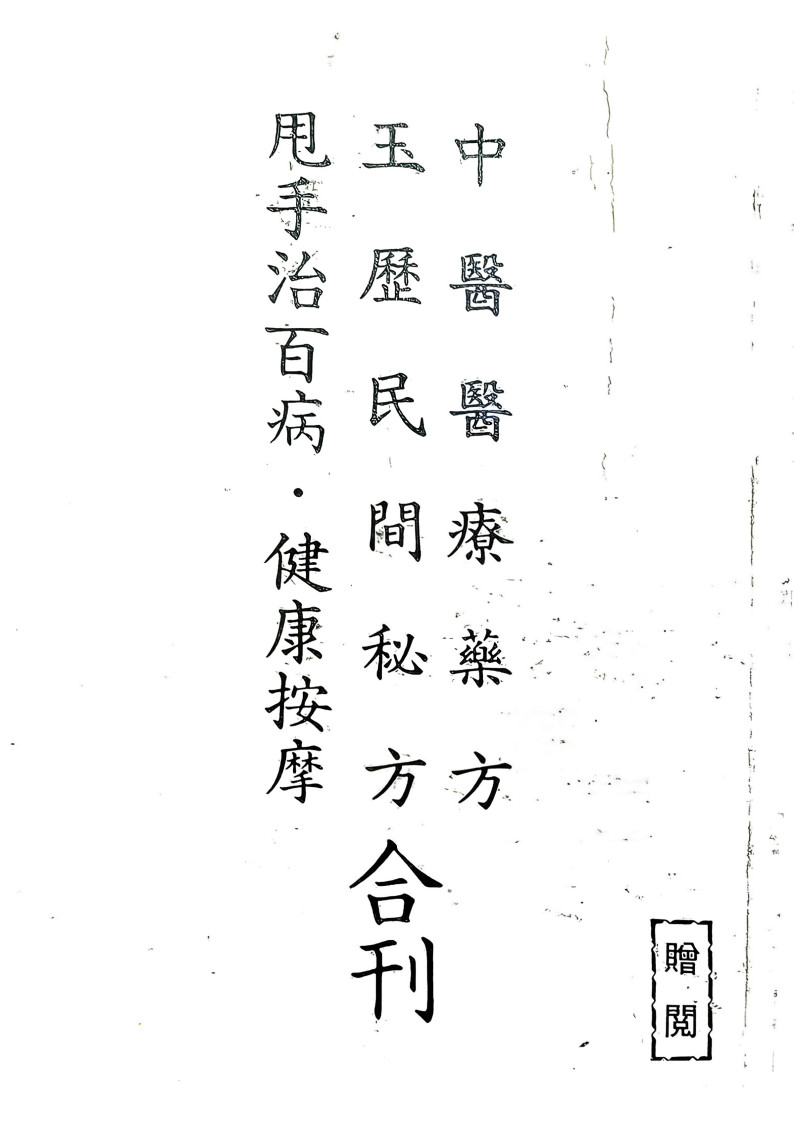 书名:《玉历民间秘方 中医医疗药方 合刊》