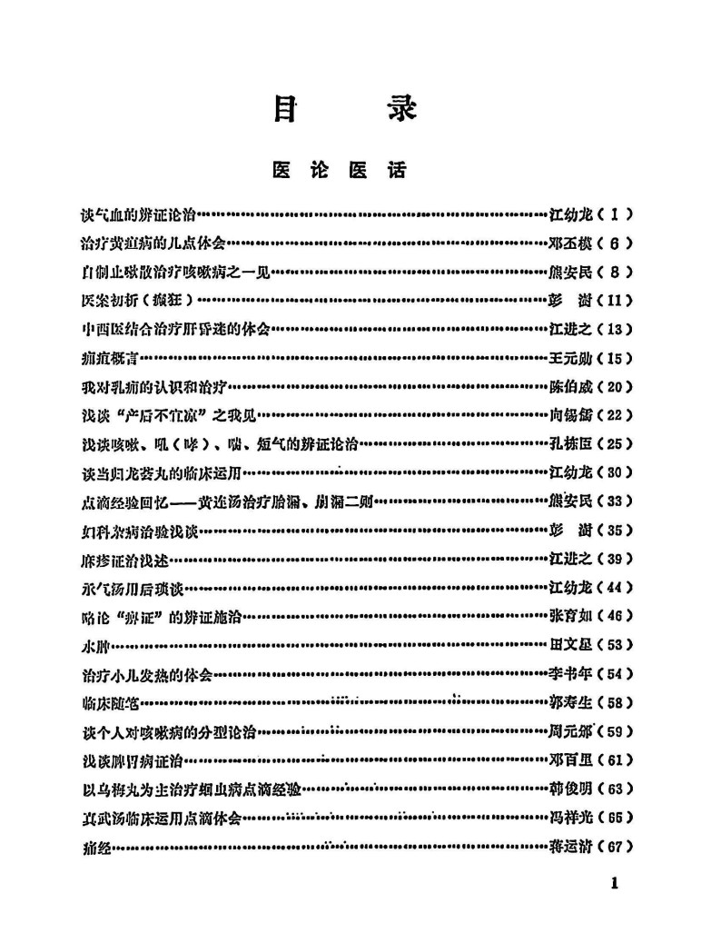 内容有:谈气血的辨证论治、治疗黄疸病的几点体会、中西医结合治疗肝昏迷的体会、麻疹证治浅述、治疗小儿发热的体会等等。