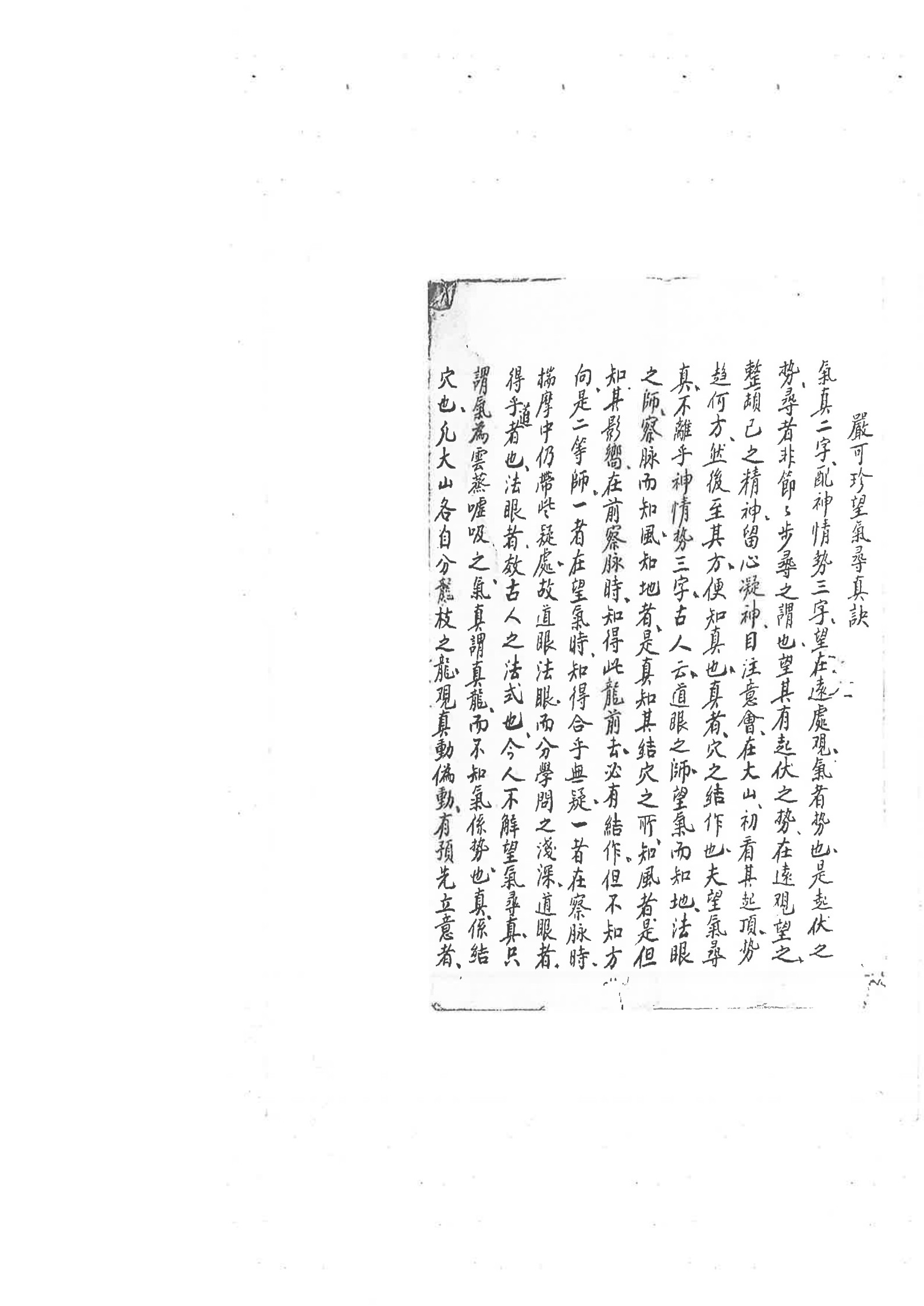 内容有:望气寻真诀、动静阴阳穿落传变解、寻真十五字诀、扒砂图、生气辨、十二杖法、断年期图、十九葬法等。