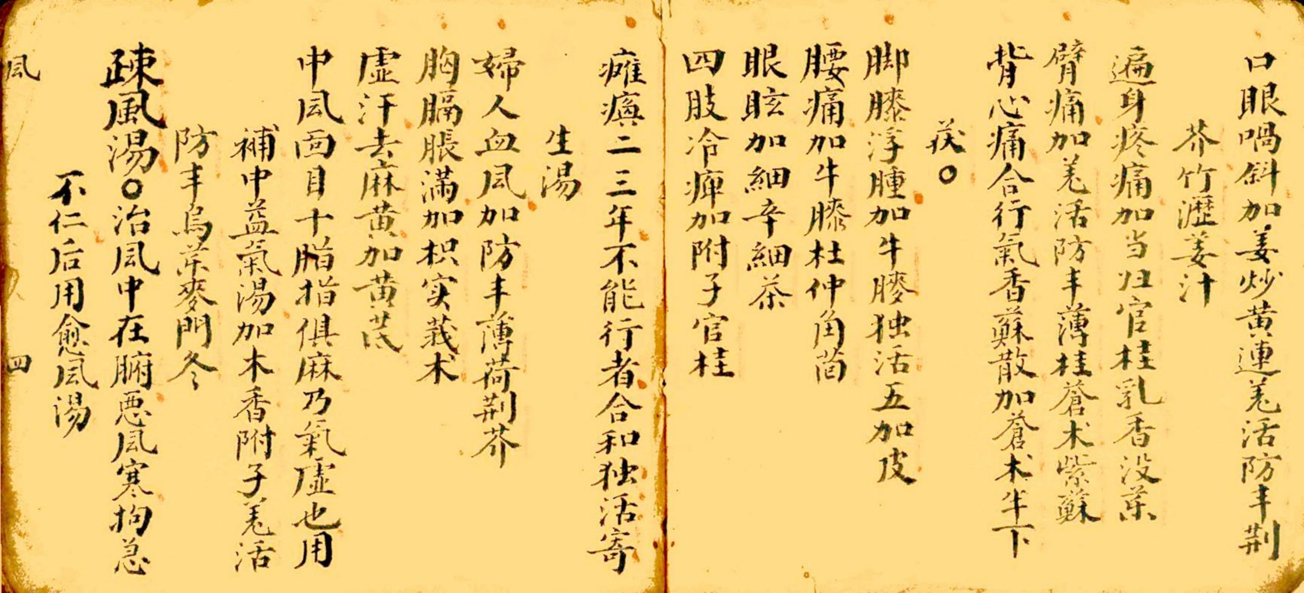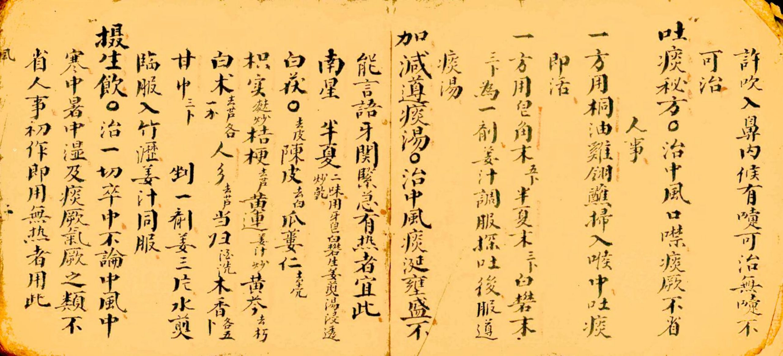 内容有:中风、生汤、滋补汤、愈凨汤、小紫胡汤、木香顺气散、伤寒附伤凨、十神汤、中寒、回阳急救汤、理中汤、、五積散、瘟疫、人彡败毒散、中暑、清暑益气汤、益元散、中湿、独活寄方药酒方、凉膈散、三黄解毒丸、痰症、咳嗽、喘急、清肺汤、、疟疾、痢疾、玄白散、立效散等等。