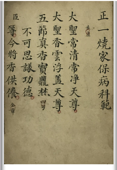 内容有:正一烧家保病科範,化财,唱,勿禀一炁,出外告煞,开驚,立禁,昼雷槌秘法等。