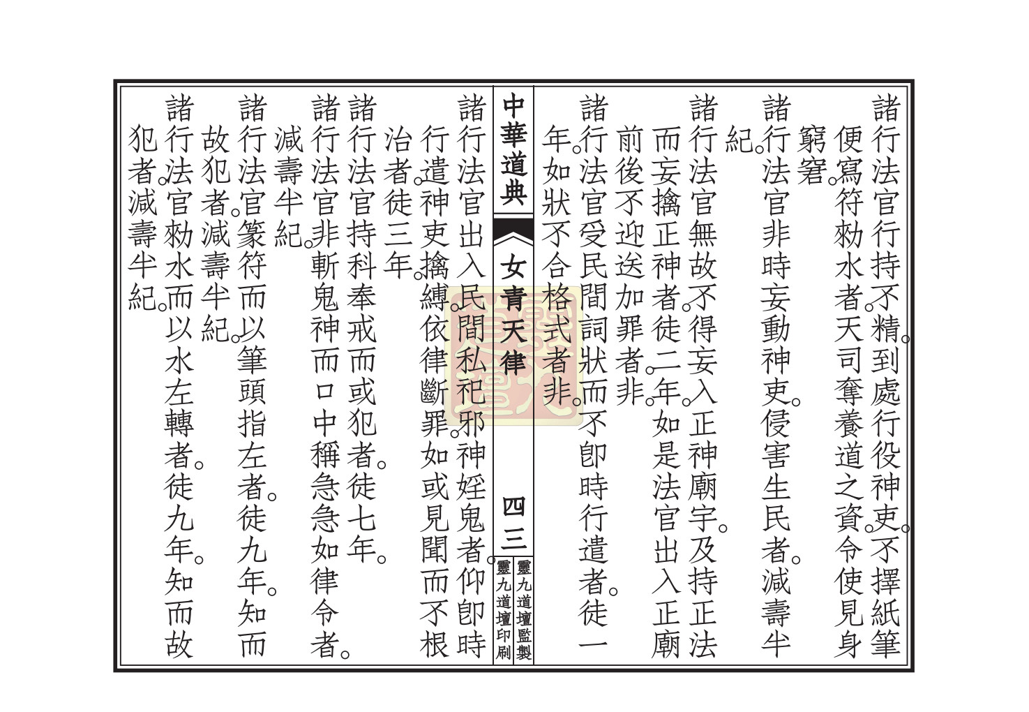 书名:《太上混洞赤文女青诏书天律》 年代:不详 页数:55筒子页 PDF大小:32M 声明:本站所有文章,如无特殊说明或标注,均为本站原创发布。任何个人或组织,在未征得本站同意时,禁止复制、盗用、采集、发布本站内容到任何网站、书籍等各类媒体平台。如若本站内容侵犯了原著者的合法权益,可联系我们进行处理。