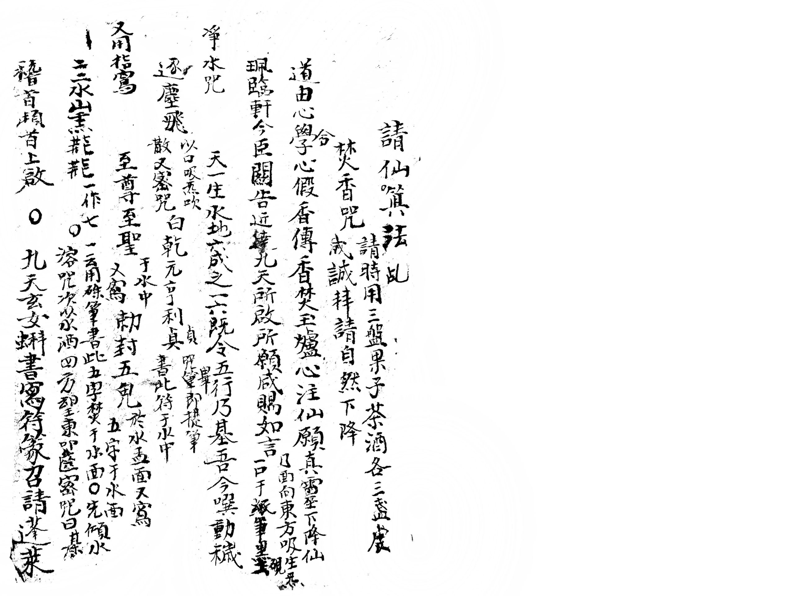 内容有:请仙咒、画符式、开壇咒、送仙符、六甲符、治疮肿痛秘诀、治蠱咒、和合符、月老配偶法、返步符等。