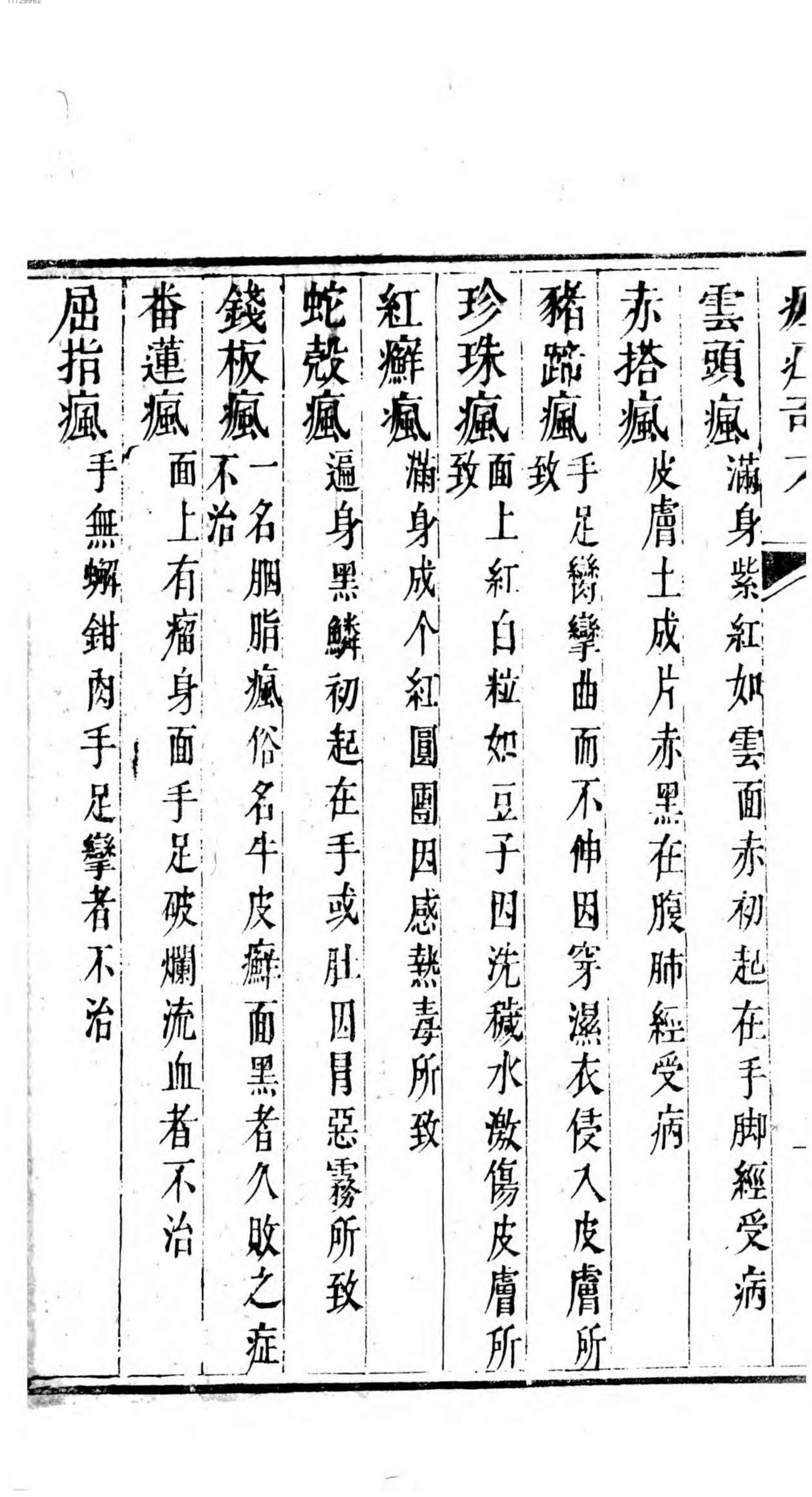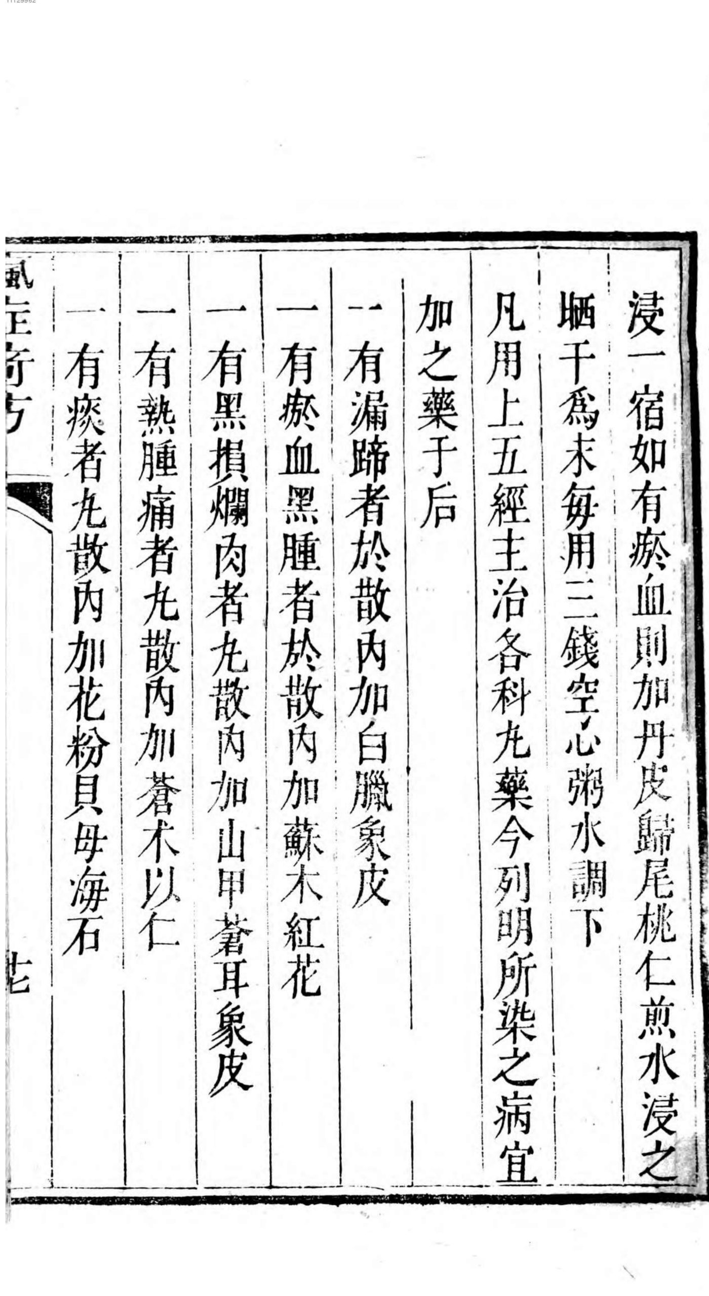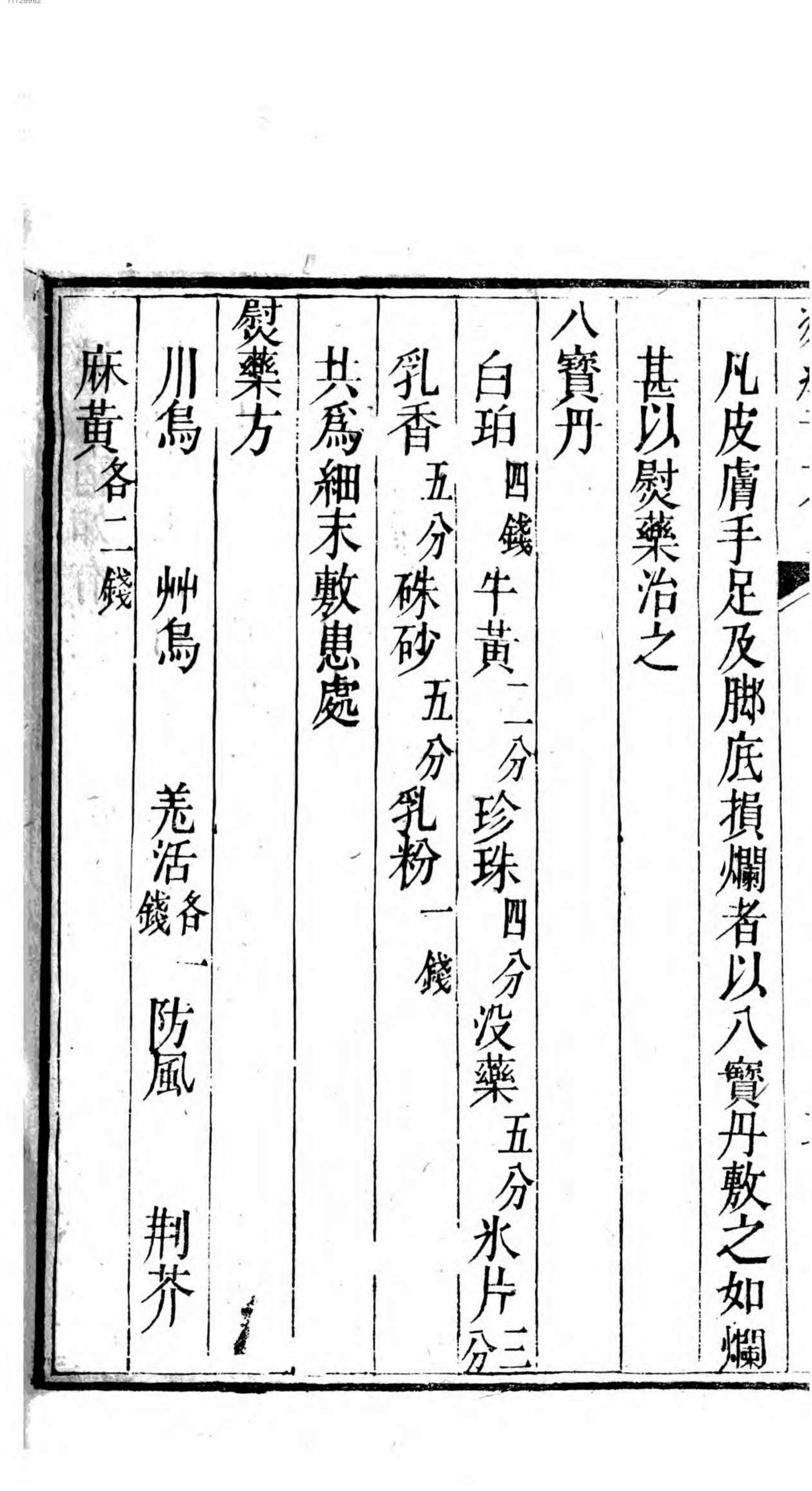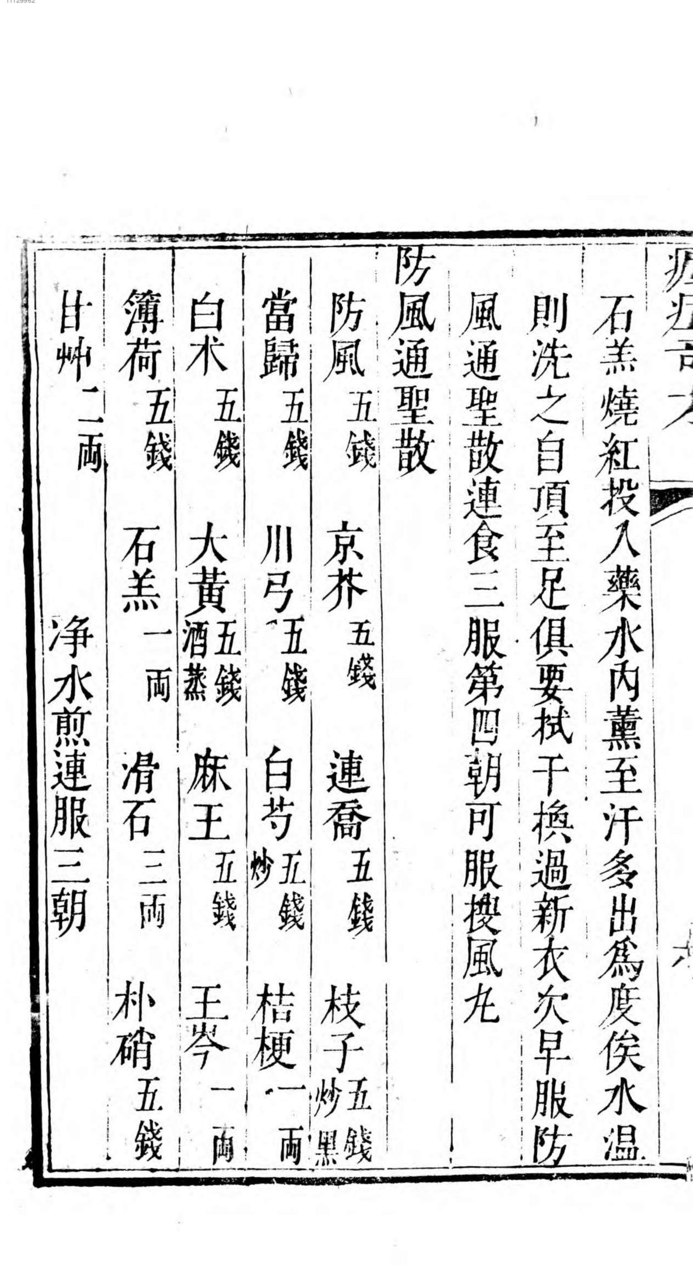 内容有:痳疯症、发汗方、防风通圣散、搜风丸、肺经主治药方、万金丹、白花蛇丸、祛风换肌散、断根牛黄丸、地圣再造丸、玄通万应丸、犀羚觧毒汤、天仙丸等等。